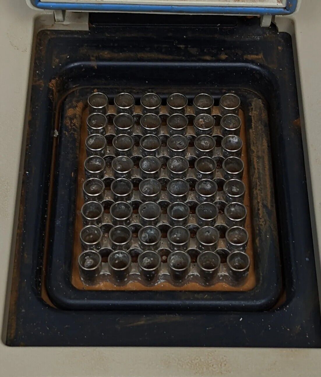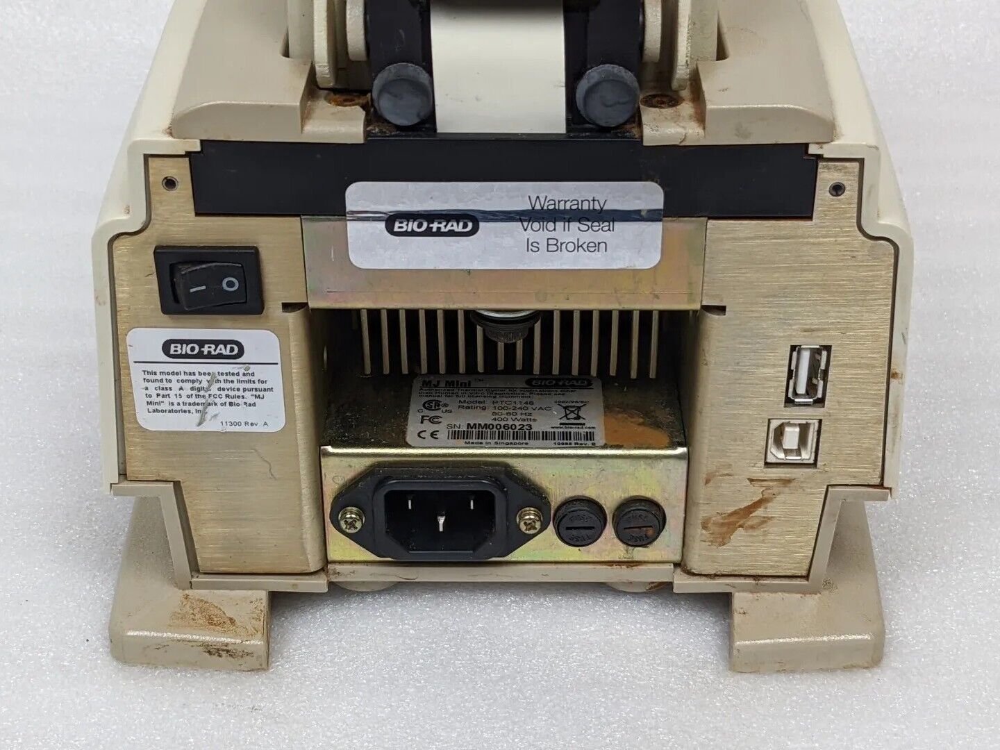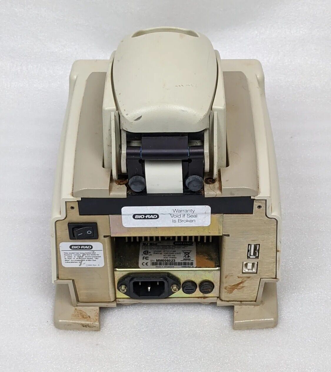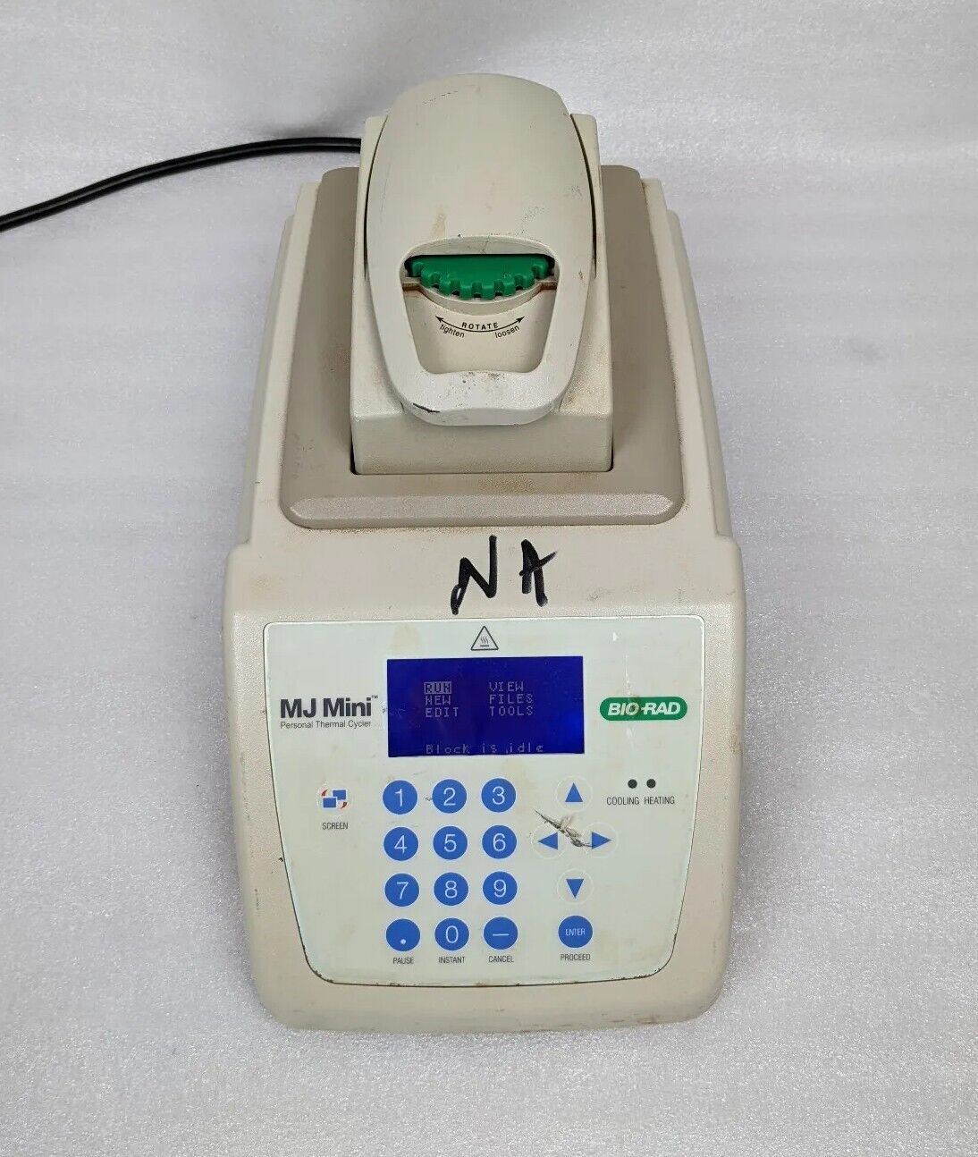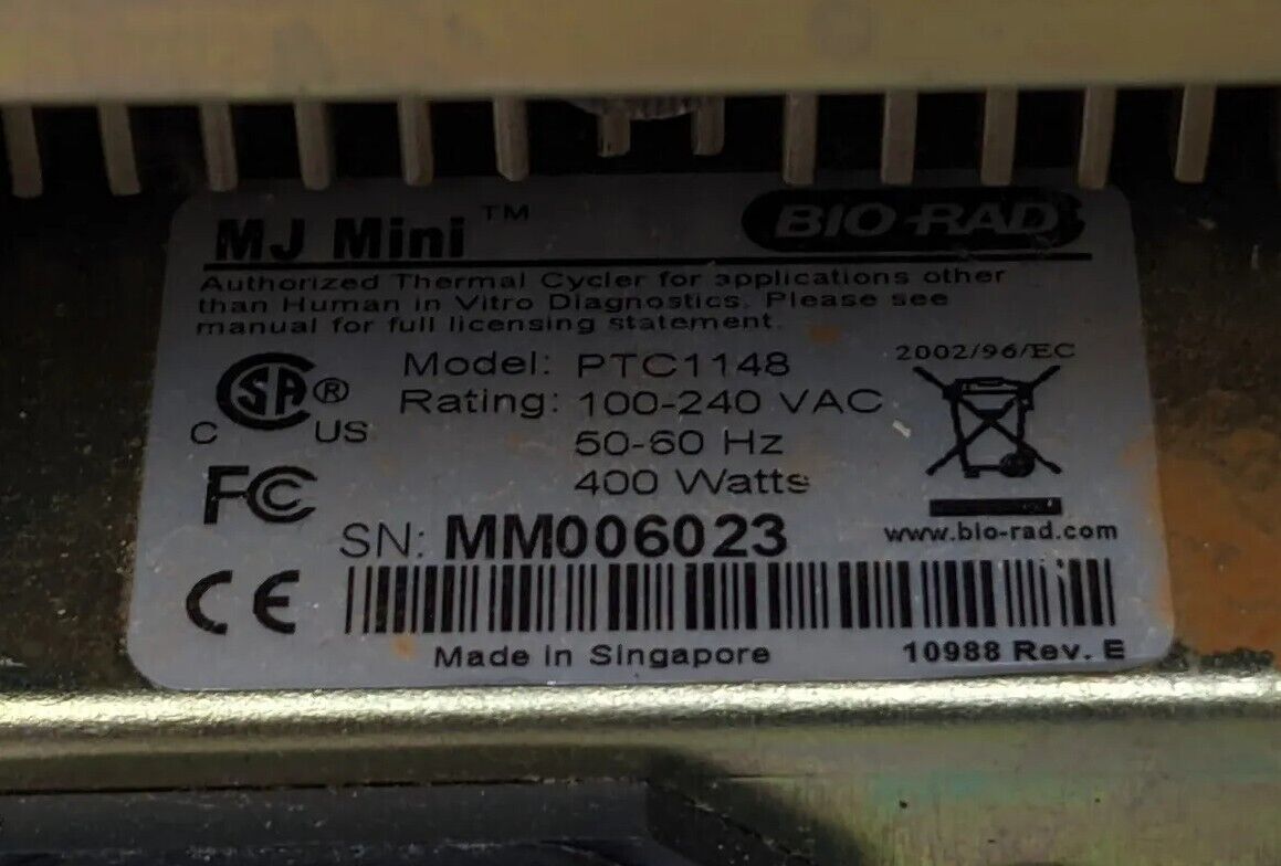 Detailed Overview: Unit is used and was removed from a working environment. Powers and passes self-test. Physically the item shows fairly heavy signs of wear. There is some orange dust in and around the top portion. Buttons are tactile. Ports are in excellent condition and clean. Listing includes Bio-Rad MJ Mini thermal cycler exactly as pictured. Does not come with power cord, cables, or any other parts/accessories.